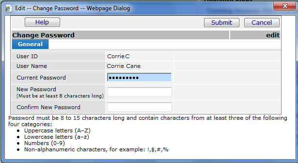 Note: If you are changing your password voluntarily, the Current Password field appears on the  Change Password panel.