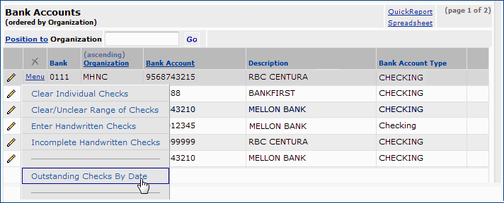 Checks Outstanding Report - Displays a list of outstanding checks for a period/year, including checks that were voided in a later period for the year.