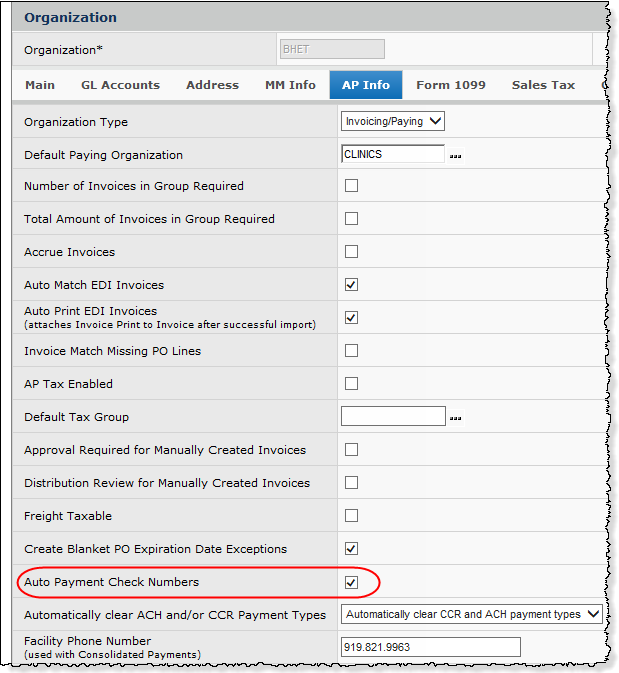Depending on the check output method that you use, you may need to select options on the Bank Account Edit panel, the Payment Profile panel, and the Vendor AP Location panel. You may also need to create a payment profile to associate with payment runs.