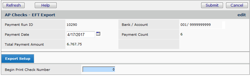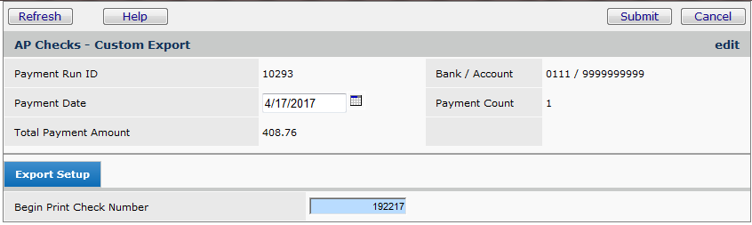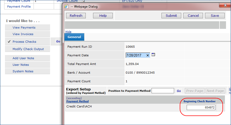 If you are using Consolidated Payment Exports, this topic explains how to process payments. However, you should also read the separate discussion Creating Payment Exports for a Bank's Integrated Payments System, because consolidated payment exports has setup steps, independent of payment processing.
