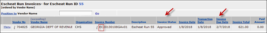 6. Locate the approved escheat invoice using the Invoice Number you found in Step 4.