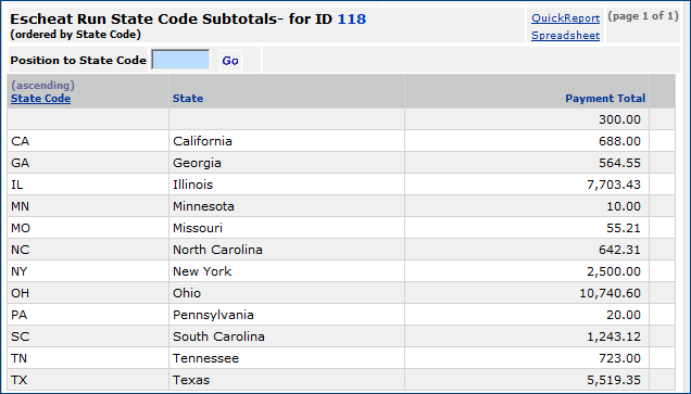 Figure 70 - Displaying a List of Escheats in an Escheat Run