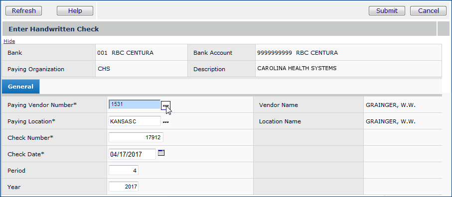 Your organization may also use check requests. A check request triggers the creation of an invoice which can then be paid following the processes outlined in this topic. For details on check requests, see Check Request Processing.
