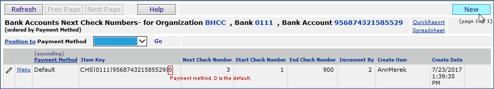 2. Locate the bank account of interest in the list (or click New if you wish to create a new bank account.)