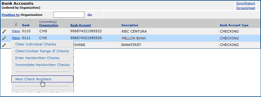 1. From the Accounts Payable Contents, select Bank Accounts.