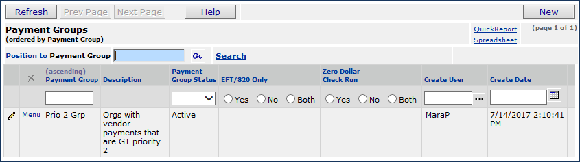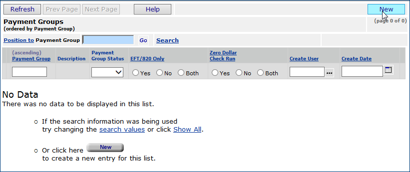 - If you clicked Show All, use the Position To box to find your invoice group in the list.
