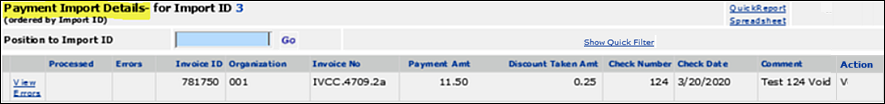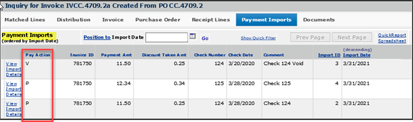 Materials Management main Contents > Invoicing > Invoices > i > Payments tab > View Import Details
