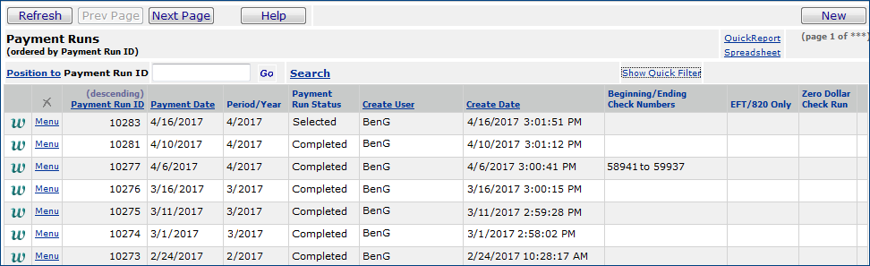 This section addresses payment runs for a single organization. It will be helpful, even if you are processing payments for multiple organizations, to review this section, since the process is similar in both cases.