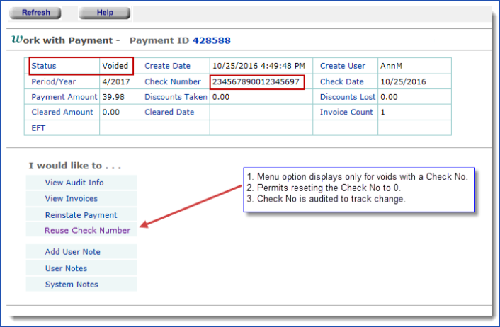 Note: The report does not include payments of $0.00, nor payments where the check year and period are the same as the voided year and period.