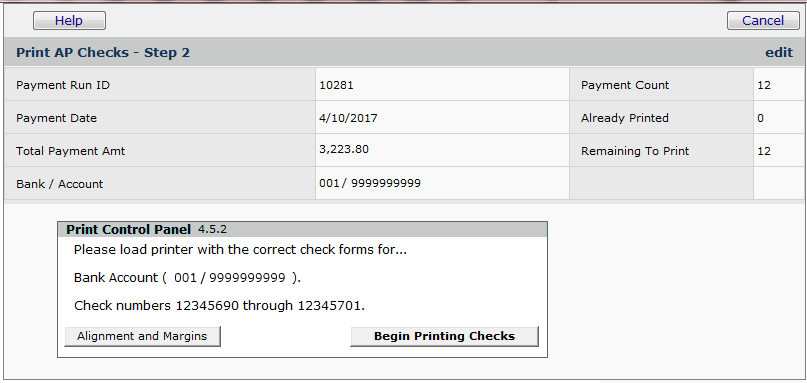 This step numbers the checks and either prints them locally, or makes them available for export.