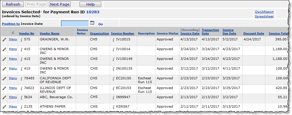 This technique - outlined broadly below - can be used to pay a group of OneTime vendors, such as patient refund invoices (whose vendor is OneTime) that have been imported from another application.