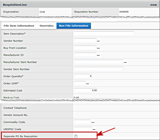 For purchase orders generated from requisitions, the field Separate PO by Requisition can be selected on the requisition line (Figure 3). When the field is selected, the requisition line is entered on a separate PO for the vendor. You can select this field on a non-file, non-stock, or direct delivery requisition line.
