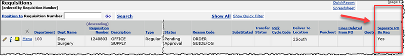 Purchase orders created and processed by the system can be separated in several ways. One way to separate POs is by department. For example, an individual department may need exclusive purchase orders for its items. Or, a vendor may require each department at your site to use a separate PO when ordering items. In either case, you will want to create POs that contain only supplies requested by each specific department.