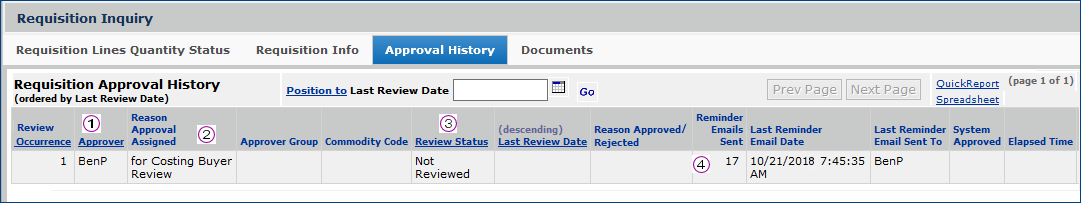 approver (Direct Approver) or approver group  that handles requisition approval.