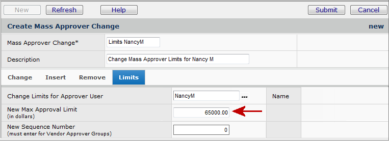 Figure 43 - Using the Limits Tab to Change a Maximum Dollar Limit