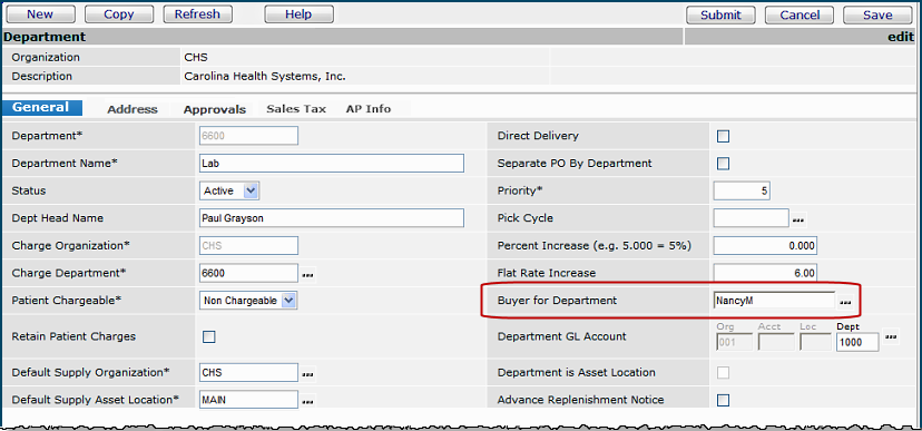You can   assign each department an approver group or a single direct approver (but not both), and an approval profile. Approval   profiles contain the dollar limits allowed for different item types   (stock, non-stock, non-file) on  requisitions.