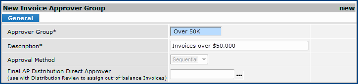 The invoice approval process and setting up invoice approval  groups is described in a separate topic: Invoice Approval Processing.