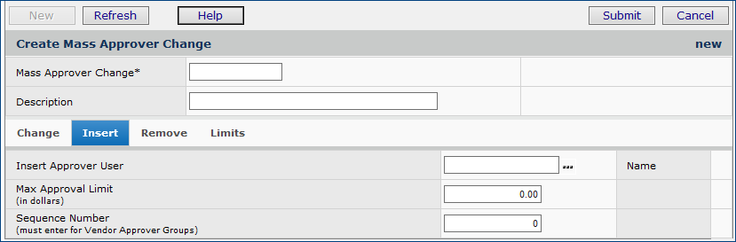 Figure 40 - The Insert Tab for a Mass Approver Change Job