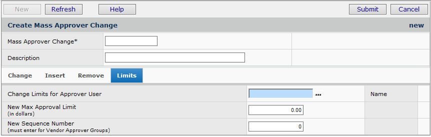 Figure 41 - The Limits Tab for a Mass Approver Change Job