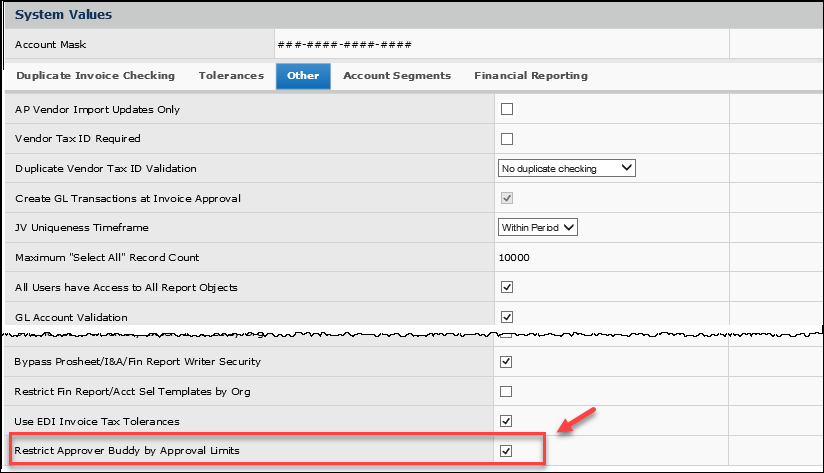 and permissions for  users, including users who approve requisitions, invoices,  check requests, and journal vouchers.