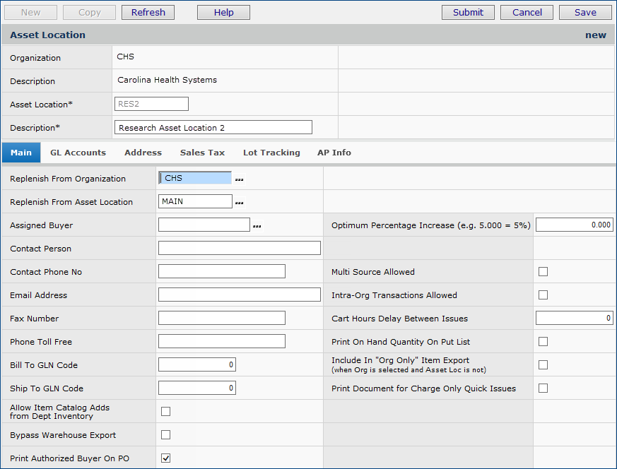 At the end of this topic are "walkthrough instructions" for creating manual Inventory Transfer Requisitions between asset locations in the same organization.  The instructions are basic, and are intended for users whose sites are already set up for transfer requisitions. Other users should read the detailed material that begins in the next section "Define Asset Locations."