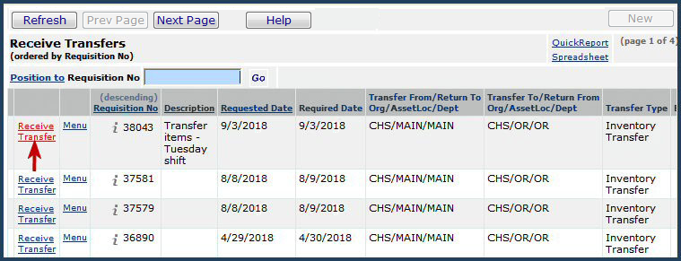 Step 5.  Receive the items on the transfer requisition at the "To" asset location.