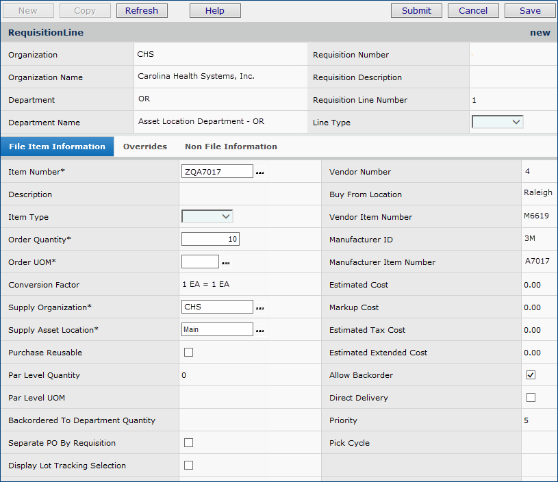 If you are unfamiliar with creating, approving, and releasing manual requisitions, read Requisition File and Non-File Items before you try to follow the steps below.