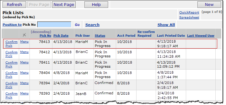 -    When the items for transfer have been picked, from the Materials Management main Contents, select Warehousing > Pick Lists.