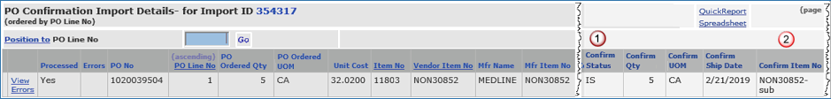 - the Confirm Item No column contains the Vendor Item Number of the substituted item (Figure 4