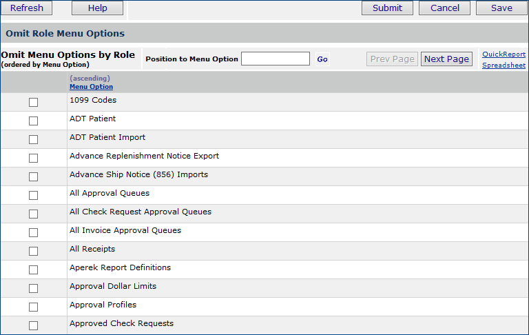 If you wish to allow a user to access a menu item that is on this list, unselect the item.