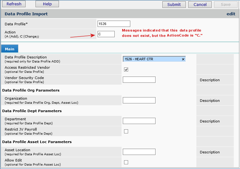 - When a Delete (D) record has an organization and department entered, then the department for that organization will be deleted from that Data Profile.