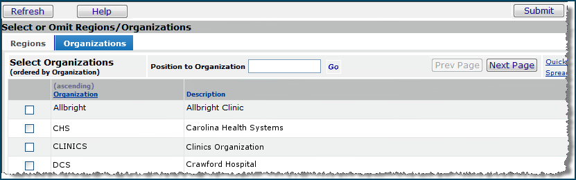 - From the data profile Menu click Valid Regions/Organizations, or Valid Departments (Figure 55A