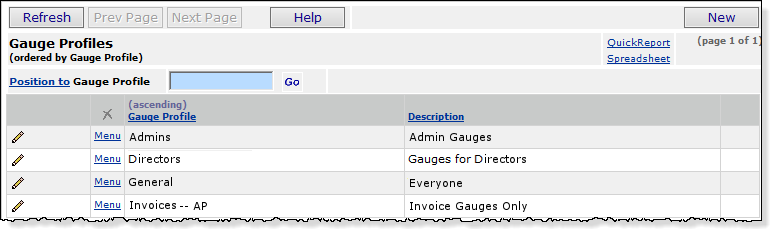 A user's assigned report profile makes the appropriate reports accessible to the user. You will want to restrict users from creating and running certain types of reports, and allow them to create and run other reports. For example, check printing runs in the system as a report. Most likely, you will want to authorize only a few users to print checks. Similarly, only a few users in each department will need the Department Expense Report.
