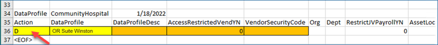 - When a Delete (D) record has only an organization entered, then the organization and all the departments and asset locations for that organization will be deleted from that Data Profile.