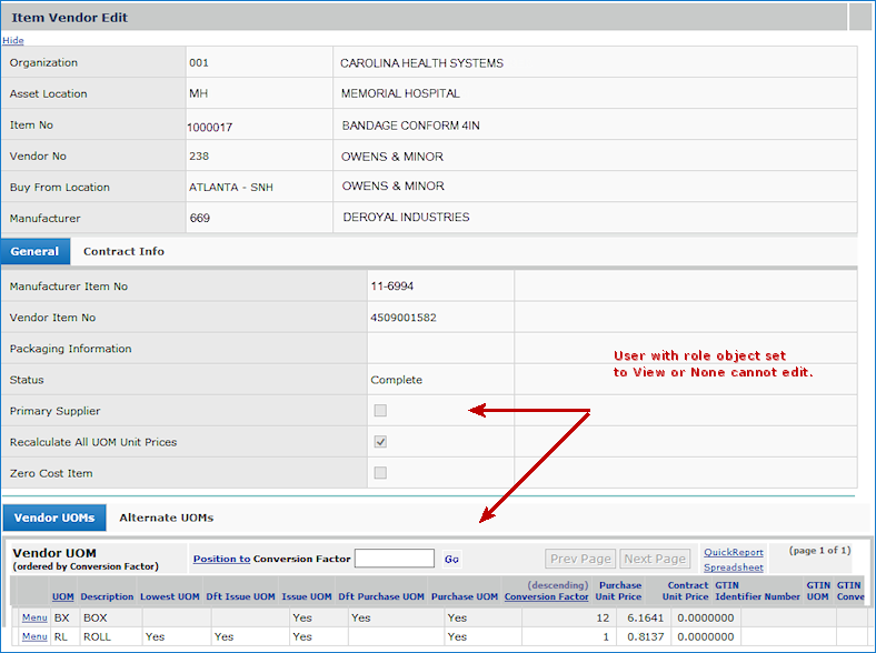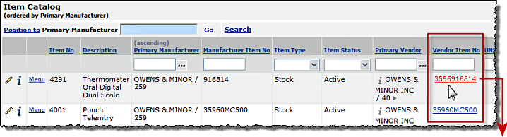 - For example, to view the Owens and Minor catalog entry from an  item  record, click the Vendor Item Number (Figure 19).