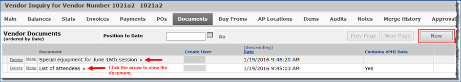 the main Materials Management or AP Contents, select Vendors > Vendors.