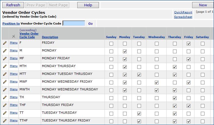 for a vendor's buy from location. To identify vendor order cycles, use the Materials Management Tables.