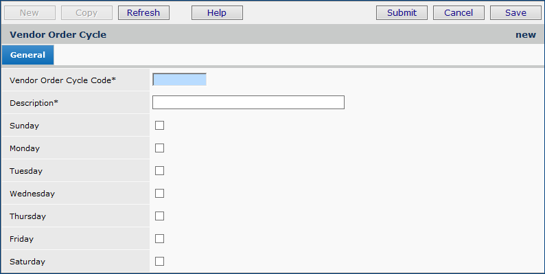 The Vendor Order Cycle is defined in the system. You can use the Vendor Order