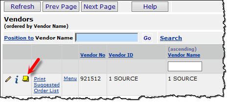 on other  lists in the system). Figure 16 shows a yellow note pad icon next to a vendor